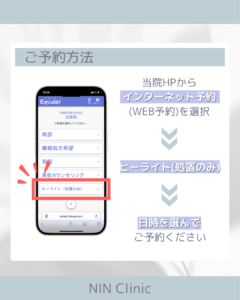 予約はWeb予約にて、「ヒーライト外来」を選択してご来院ください。