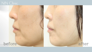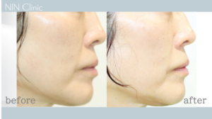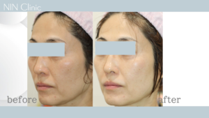 口角横のマリオネットライン、が浅くなり、チークトップがupして若々しい印象に。
